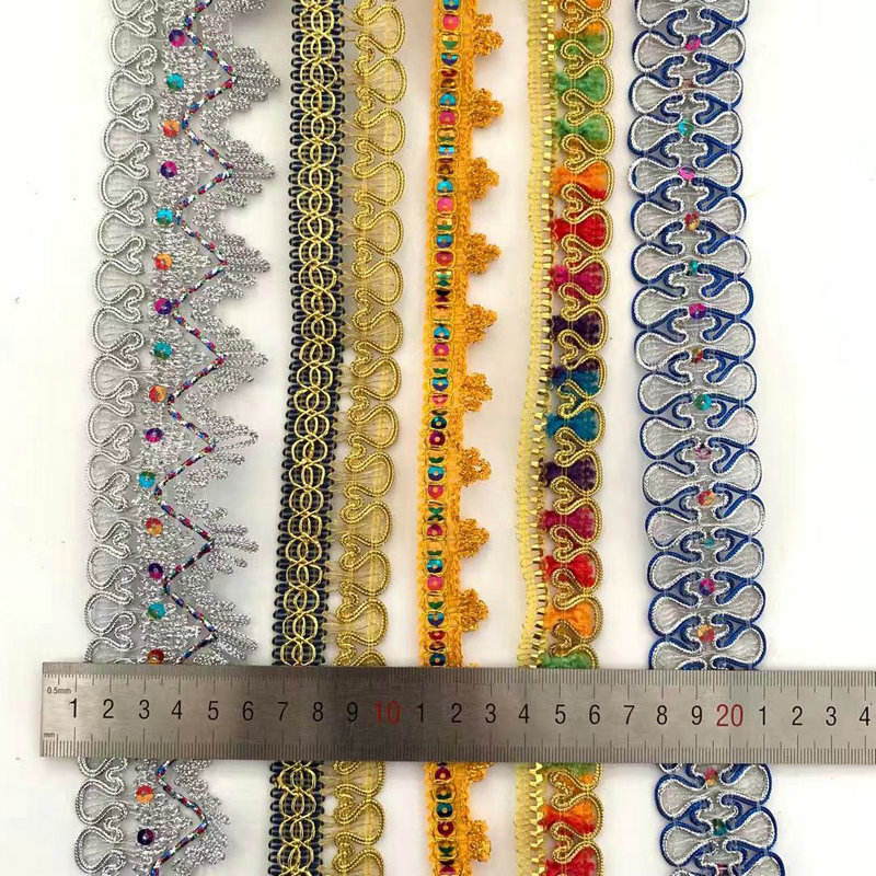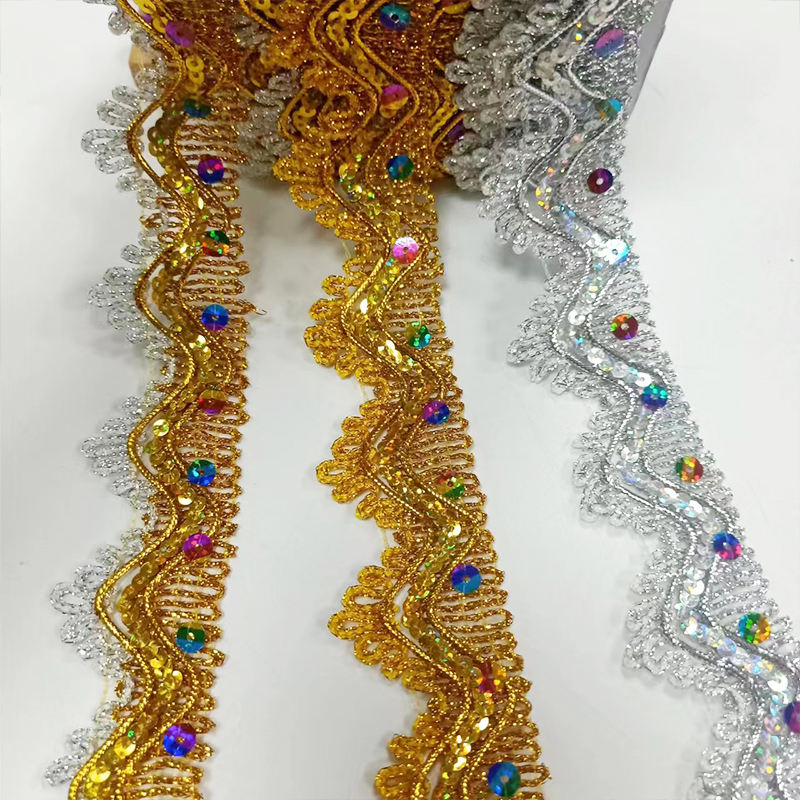 Oblačila dodatki Zlata in srebrna kovinska mejna čipka Trim Multicolor Sequin Gold Nit Kovinska čipka