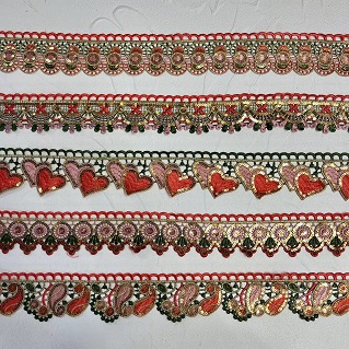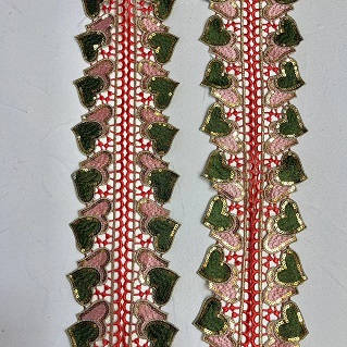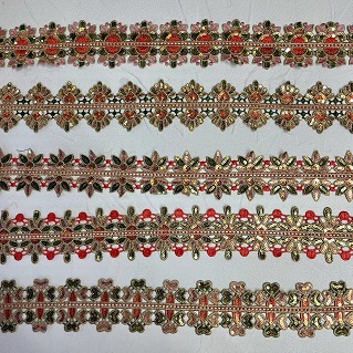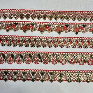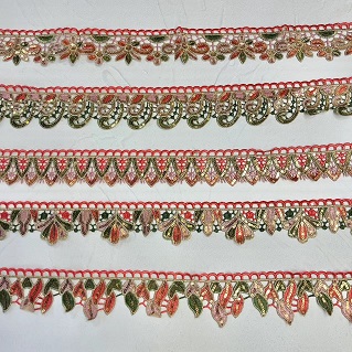 Zlate sekvence barvite vezene guipure čipke uporabljajo zlate pajkice in barvito vezenje dodajajo kanček glamurja in prefinjenosti čipki, zaradi česar je priljubljena izbira za dekoracijo oblačil ob oblačilih za posebne priložnosti. Obleke, obleke in dodatki, kot so šali in šali, pogosto vsebujejo to vrsto čipk, ki celotnemu videzu dodajo barvo in teksturo.