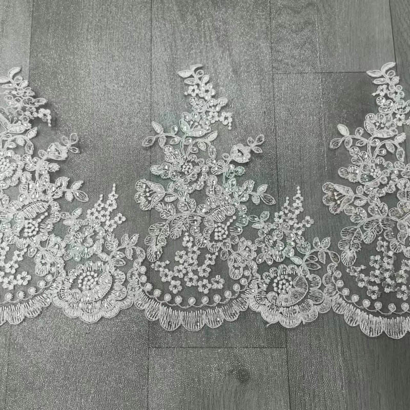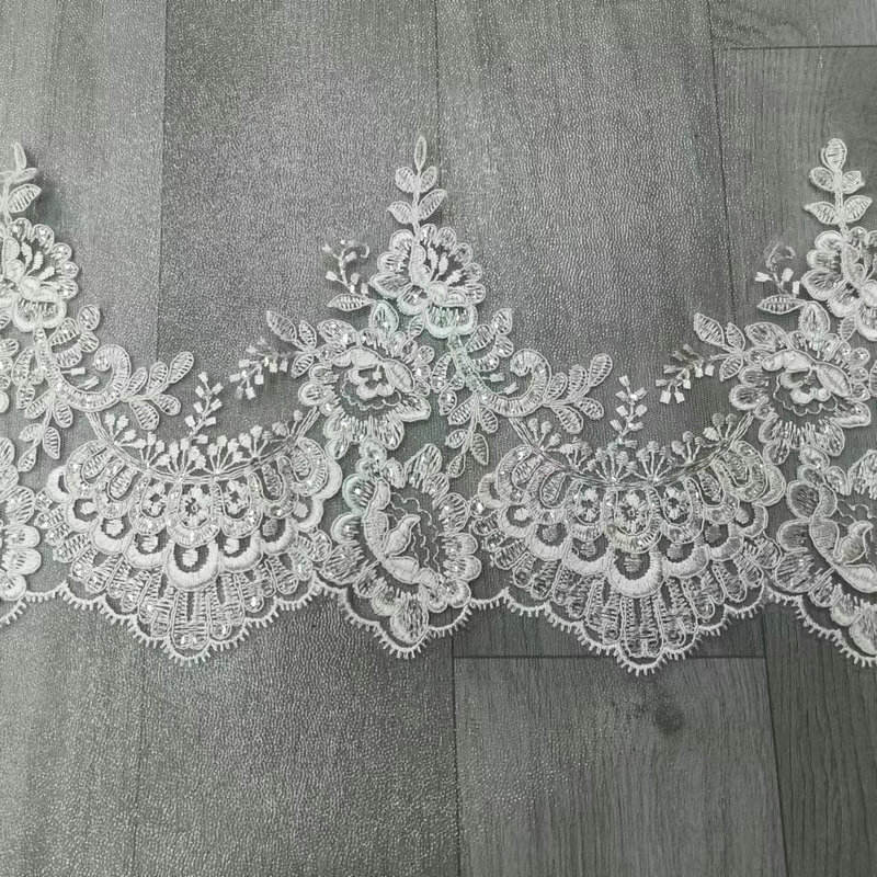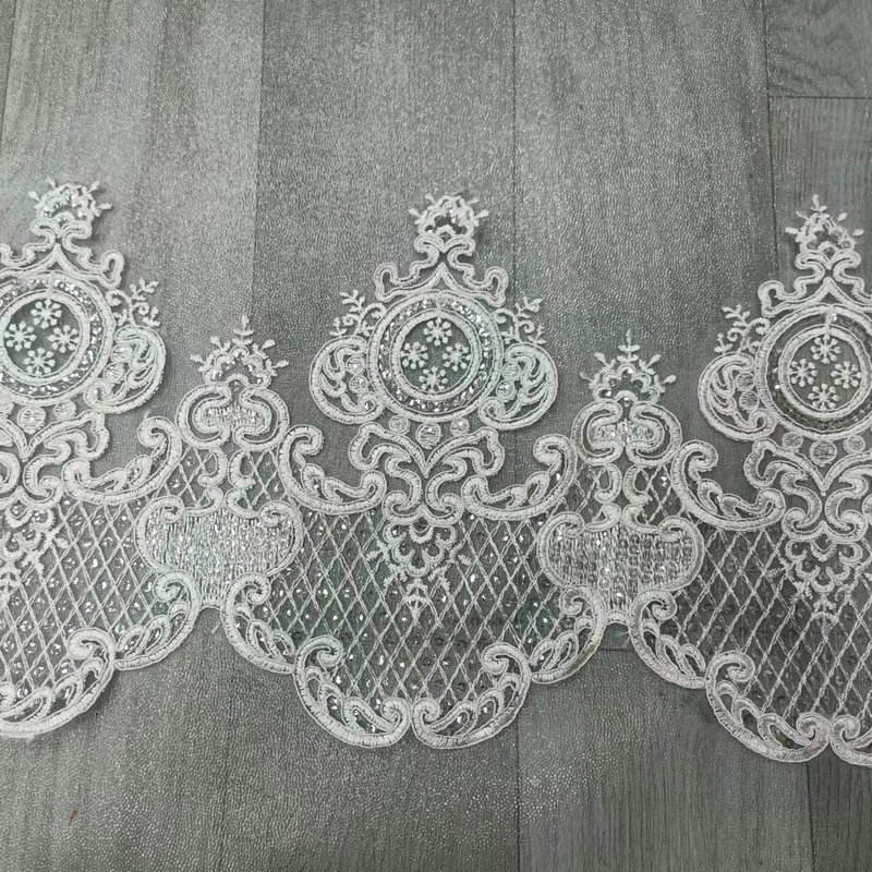 Luksuzna bela poročna francoska čipka, vezena obloga za poročno čipko za poročno obleko