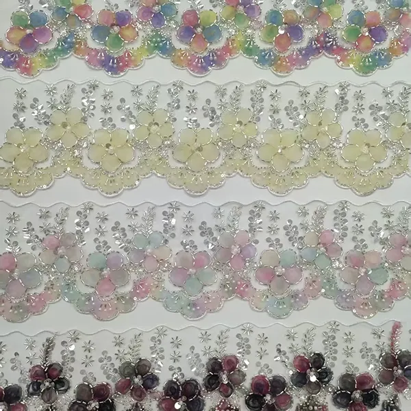 | Blago | Večbarvna vezena čipka s 3D mrežastim trakom, cevjo s perlicami, čipka za vezenje s črtno kodo | ||