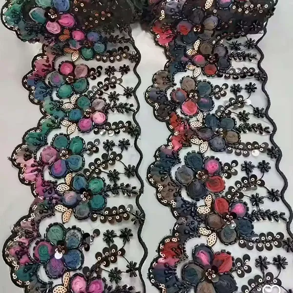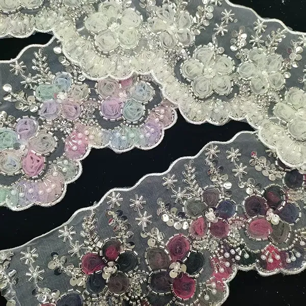 Večbarvna vezena čipka s 3D mrežastim trakom, cevjo s perlicami, čipka za vezenje s črtno kodo
