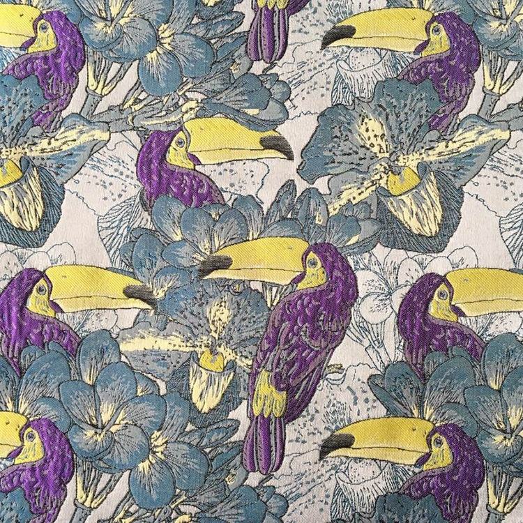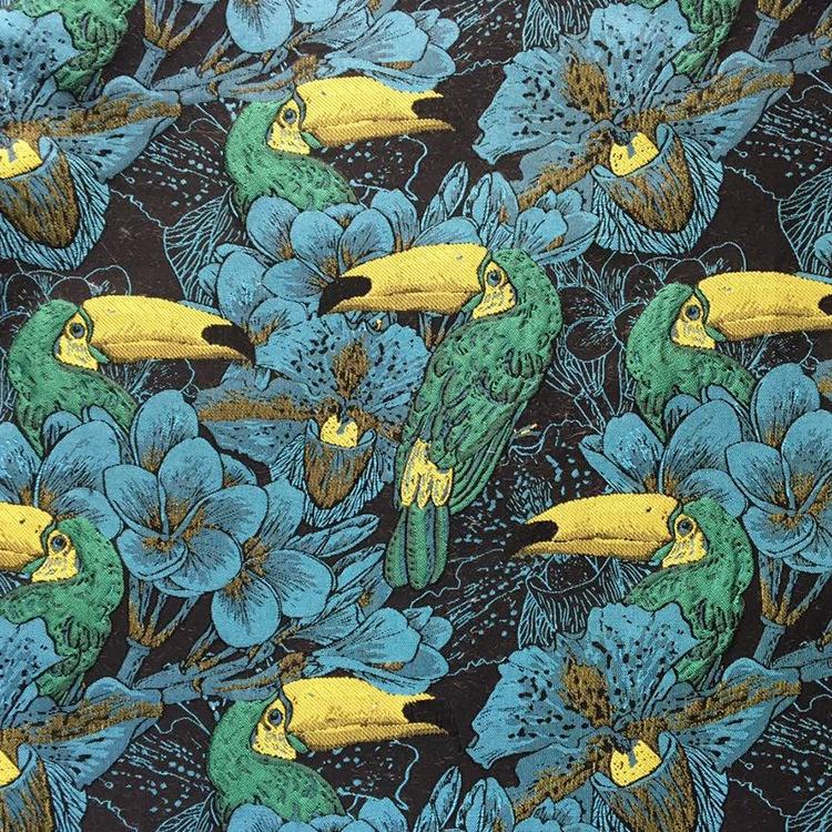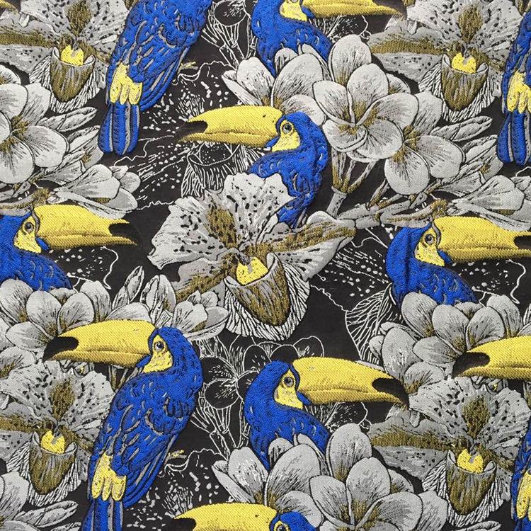 Tkanina za vezenje iz tekilnega tiskanja Jacquard tkanina za obleko Fino Jacquard Technique v kombinaciji s tridimenzionalnim vezenjem ima polni in tridimenzionalni vzorec. Tkanina je mehka, dobro drapista in je dihajoča in kože prijazna. Primerno je za prilagajanje večernih oblek, banketnih oblek, modnih ženskih oblačil itd.
