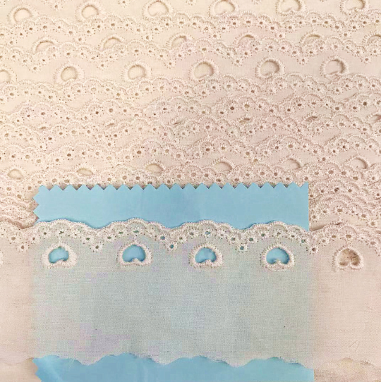 Beli floretni bombaž z valovitimi robovi čipkaste obloge iz čistega bombaža, ima tridimenzionalne majhne cvetove z valovitimi robovi, zaradi česar je mehak, dihajoč in naravno retro. Primerno je za okrasitev otroških oblačil, ženskih oblačil, gospodinjskih predmetov itd. Je okolju prijazen in koži prijazen, strojno pralno in ponuja več možnosti širine. Prilagoditev je podprta.